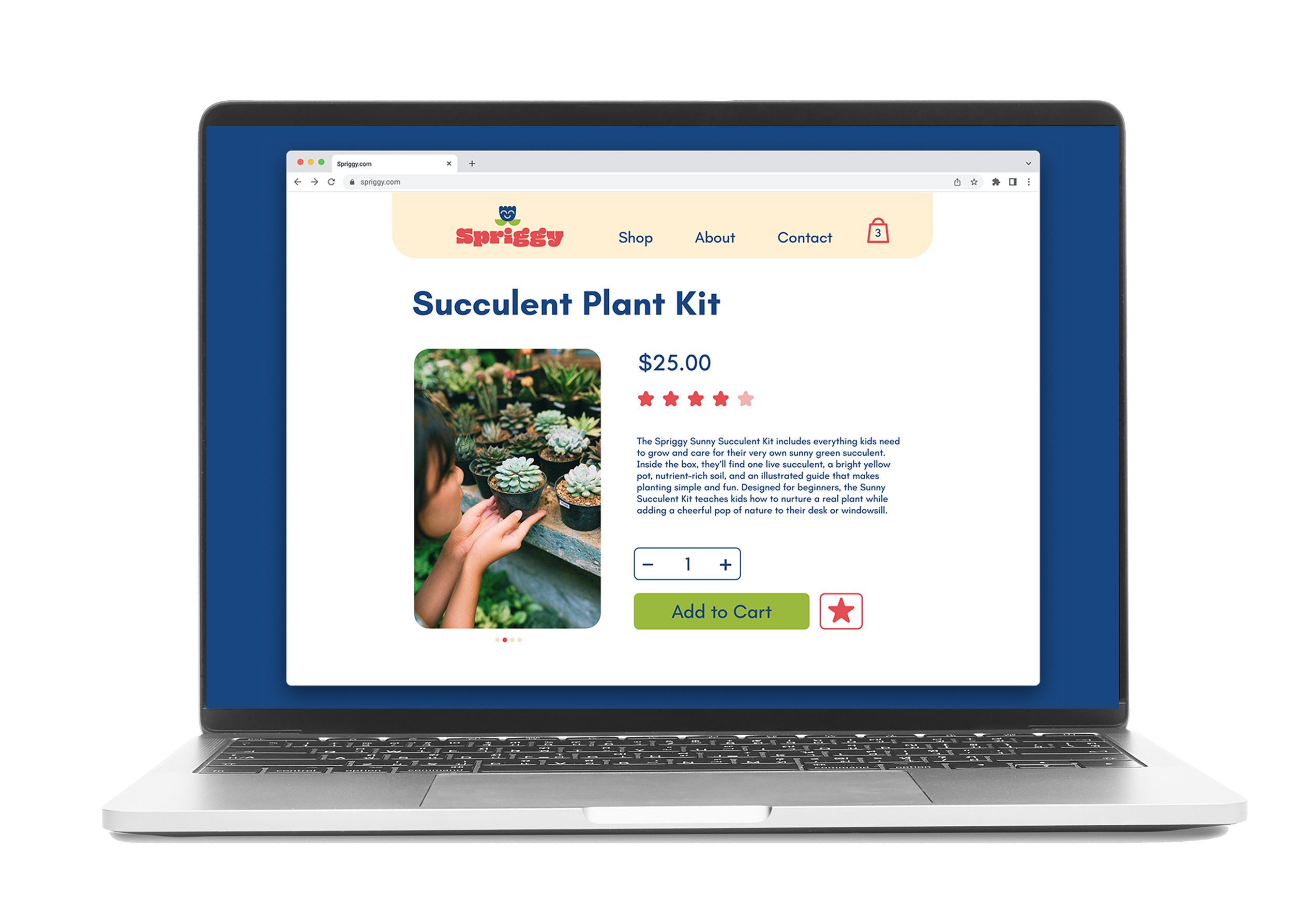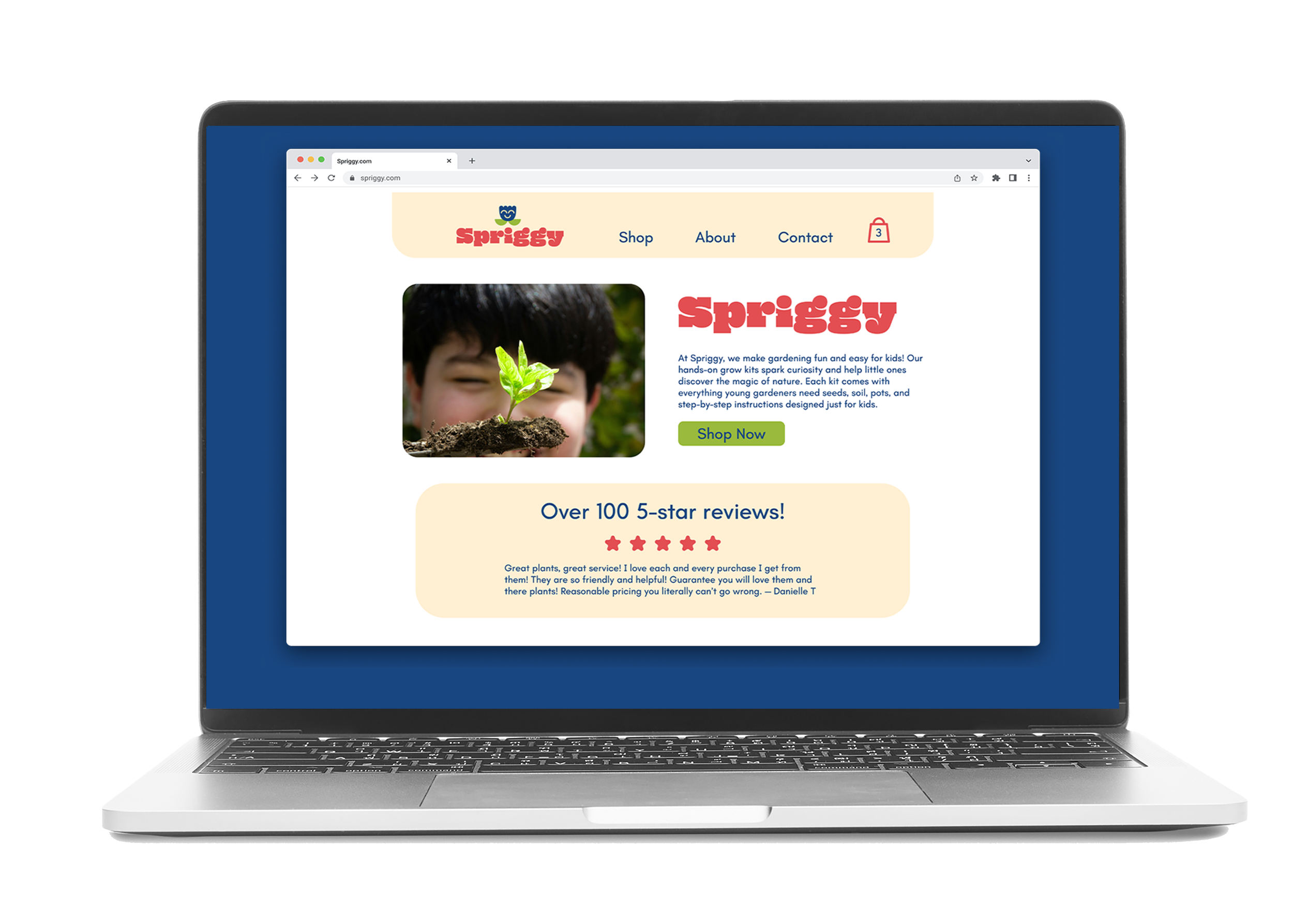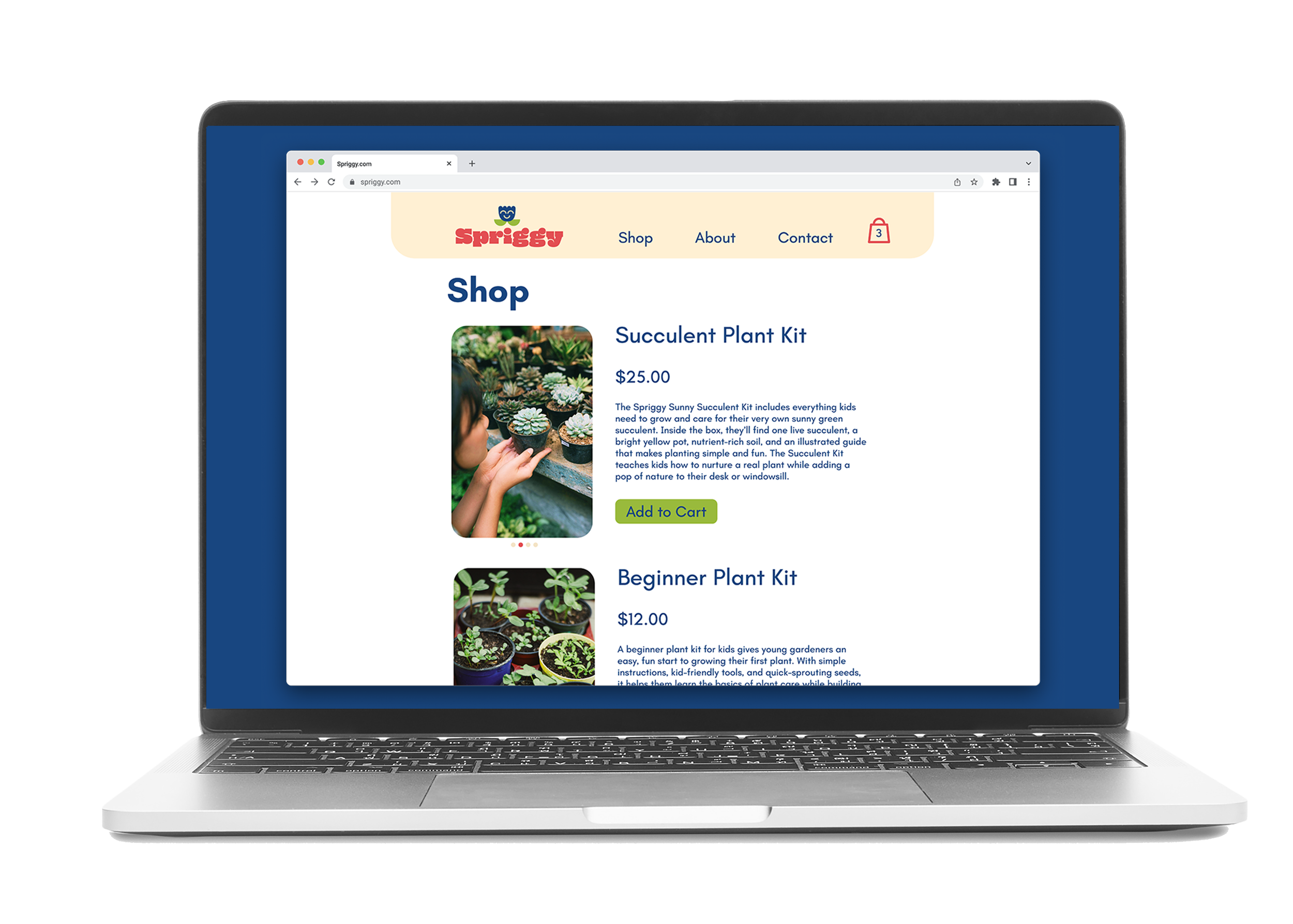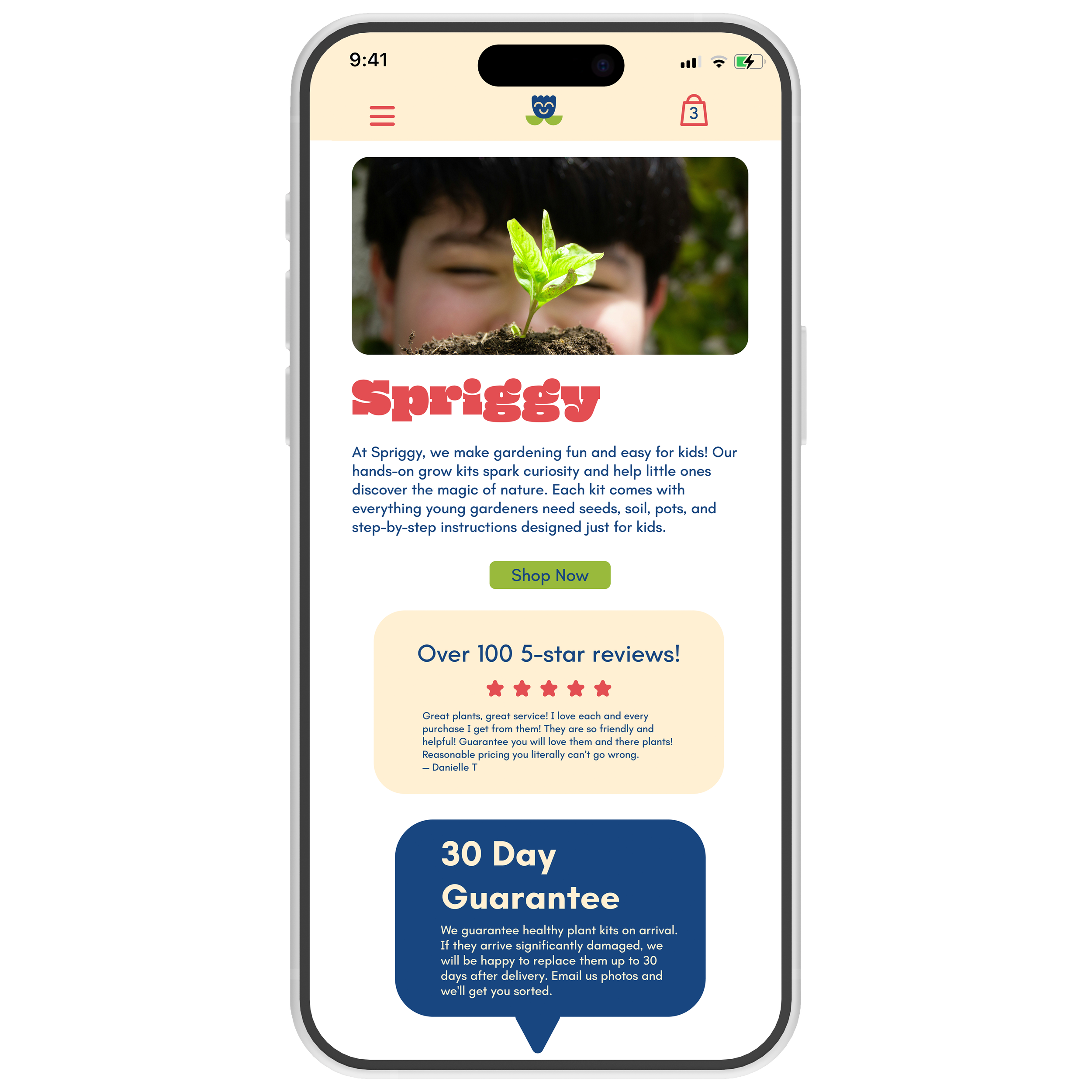 Branding Spriggy meant finding the balance between playful energy and approachable simplicity. The visual identity uses bright, cheerful colors and friendly illustrations to capture the excitement of growing something from scratch. At the same time, clean layouts, clear typography, and straightforward messaging keep the brand easy to understand for both kids and parents.